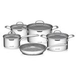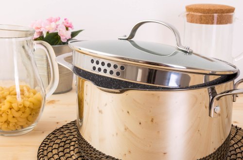 Obrovskou výhodou oproti bežne používaným hrncom sú výparníky/cedníky, ktorými sme osadili všetky pokrievky v sade. Už si nepopálite ruky pri zlievaní horúcej vody zo zemiakov či cestovín. Pre rýchlejšie uvedenie surovín do varu len pootočíte pokrievkou a výparník/cedník sa uzavrie.