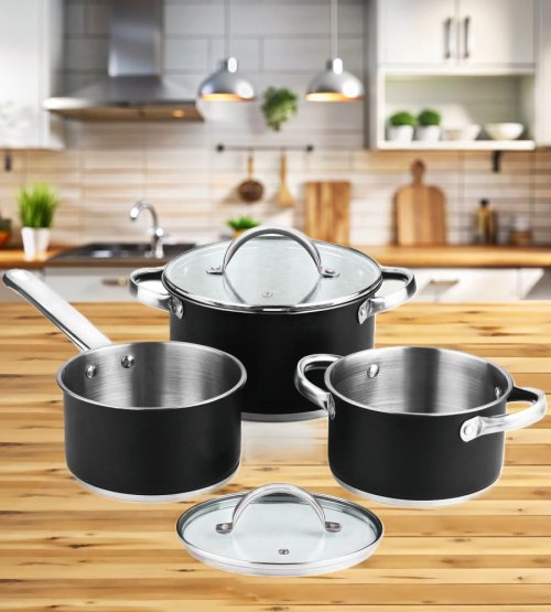 • Riad skladajúci sa z 2 kastrólov, 2 pokrievok a rajnice: kastról 16 cm s objemom 1,3 L + kastról 20 cm s objemom 2,8 L a kastról 24 cm s objemom 4,5 L. • Vyrobené zo silnej nerezovej ocele pre rýchlu distribúciu tepla . Pevný a odolný materiál l. • Tento riad obsahuje 2 pokrievky z číreho skla pre každý kastról a má otvor pre výstup pary. •Vhodné pre všetky typy sporákov: indukčné, halogénové, elektrické, plynové a sklokeramické.•Odporúčame ich umývať ručne.Veľmi kompletný a moderný riad. Skladá sa z 16 cm kastróla, 20 cm kastróla a 24 cm kastróla. Rýchla distribúcia tepla vďaka nerezovej oceli vám umožní získať ten najlepší riad a ušetriť čas. Súčasťou sú 2 priehľadné sklenené pokrievky, pomocou ktorých môžete bezpečne ovládať okamžité varenie. Tento nádherný riad si môžete vychutnať v každom z rôznych typov sporákov, ktoré existujú na trhu: indukčné, halogénové, elektrické, plynové a sklokeramické. Odporúča sa ručné umývanie.