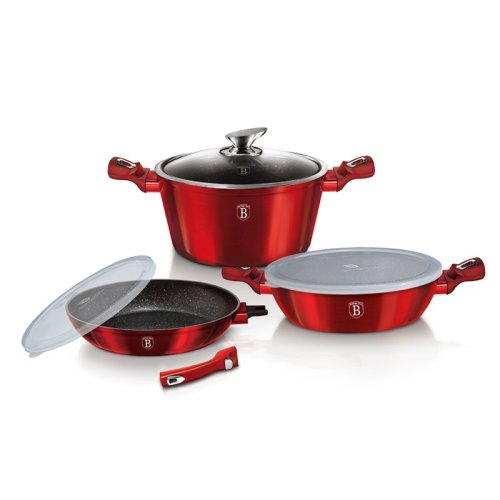 Súprava riadu s odnímateľnou rukoväťou a mramorovým povrchom 6 ks Burgundy Metallic Line.
