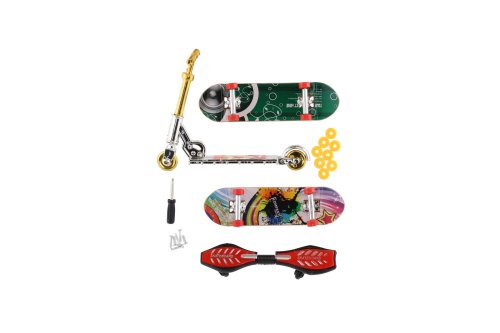 Vykonávajte a naučte sa nové triky na mini skateboarde (2ks), waveboarde, korčuliach a kolobežke. Skateboardy sú skrutkovacie s potrebnými doplnkami. Vyberte si svoj variant a zažite nekonečnú zábavu. Rozme balenie: 16 x 30 cm Vhodné od 3 rokov