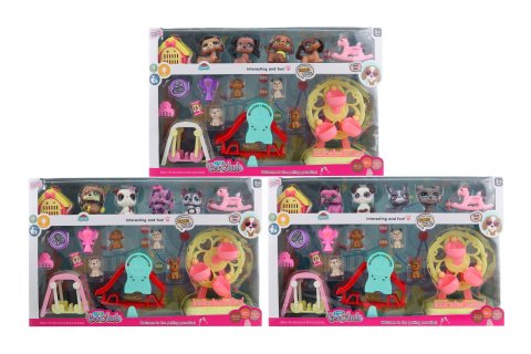 Veľká sada zvieratiek s doplnkami. Balenie obsahuje 4 väčšie zvieratká, 4 menšie zvieratká, domček, šmýkačku, hojdačku, hojdacieho koníka, kolotoč a menšie doplnky. Materiál plast. Balené v krabici. Rozmery balenia 45 x 28 x 9,5 cm. Väčšie zvieratko cca 6 cm, menšie zvieratko cca 3,5 cm. Vek 3+