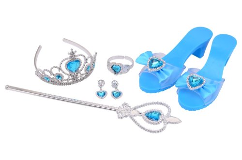 Sada pre Ľadovú princeznú. Sada obsahuje čelenku, náušnice, kúzelnú paličku, náramok a črievičky s drahokamom.