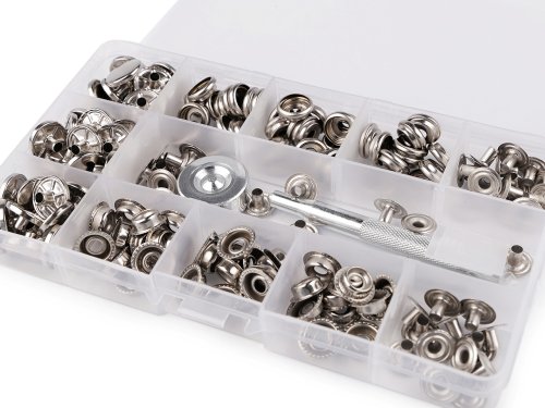 Kovové cvoky využijete ako zapínanie na odevy aj doplnky. Na aplikáciu vám poslúži razič (dĺžka 8 cm). V praktickom boxe nájdete 40 ks cvokov, razič s nákovačkou, priebojník a návod na aplikáciu.