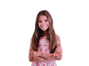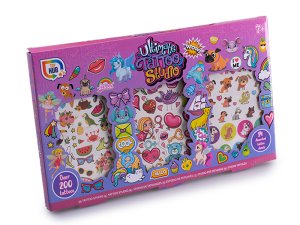 Objavte kúzlo dočasných tetovaní so sadou Tetovacie štúdio Ružové, ktorá ponúka cez 200 originálnych motívov.