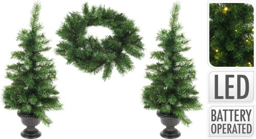 Vianočná LED sada (2 x stromček 90 cm v kvetináči, 1 x veniec 53 cm + osvetlenie) ZO.