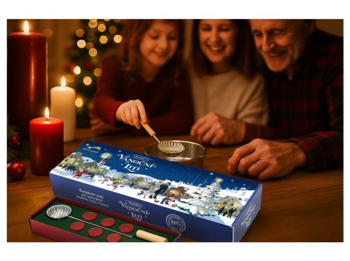 Súprava na liatie obsahuje 6 voskových mincí a taviacu naberačku. Ide o český výrobok, ktorý nadväzuje na tradičný vianočný zvyk, kedy sa z tvarov odliatych do vody hádalo, čo koho v budúcnosti čaká. Súprava je koncipovaná tak, aby mohla byť využívaná jednoducho, bezpečne a opakovane.