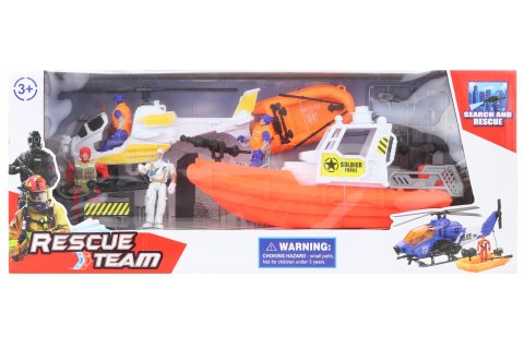 Sada záchranárov obsahuje motorový čln, helikoptéru, nafukovací čln, 4 figúrky záchranárov a ďalšie doplnky. Rozmer balenia cca 57 x 23 x 14 cm. Vek 3+