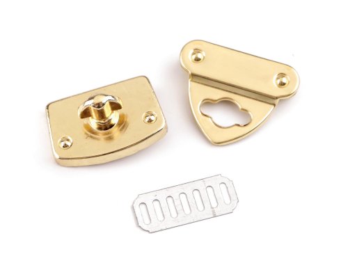 Otočné zapínanie na kabelku či tašku sa skladá z troch dielov. Pliešok sa pripevní na vnútornú časť tašky, diel s nôžkami na vonkajšiu časť (nôžky sa zaháknu do pliešku a roztiahnu) a tretí diel so zúbkami na jej chlopňu. Diel na chlopňu sa upevní tak, že roztvoríte čeľuste, na ktorých sú zúbky a medzi ne vložíte materiál, na ktorý chcete zapínanie upevniť. Následne čeľuste zovrite, zúbky tak zamedzia pohybu látky. Rozmery: - pliešok: 12 x 30 mm - diel s nôžkami: 22 x 34 mm - diel na chlopňu: 29 x 37 mm. Celkové rozmery po zapnutí sú 32 x 37 mm.