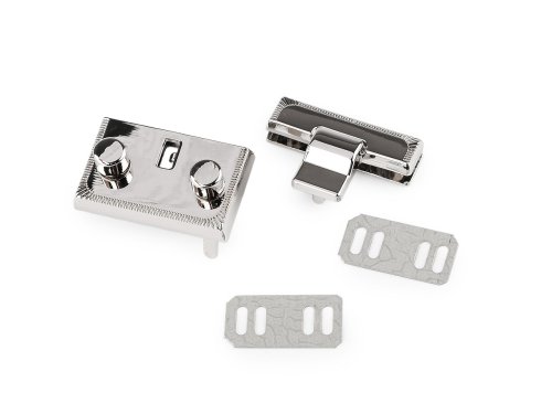 Zdobené kovové zapínanie vynikne na taškách, kabelkách a elegantných batohoch s chlopňou. Otvára sa posunutím gombíka. Horný diel sa pripevňuje pomocou priložených skrutiek. Spodný diel sa upevňuje nožičkami, ktoré sa z rubovej strany zaistia pliešky.