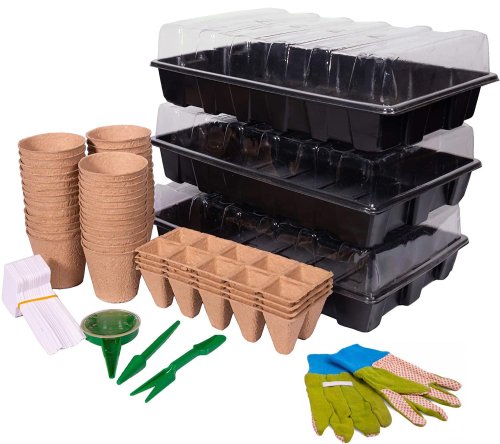 Balenie obsahuje: 3 x plastový sadbovač 37x23x5, 5cm + 3 x veko 39x25x8, 5cm 4 (2x5) x papierový sadbovač 21,5x8cm 40 x papierový sadbovač pr. 6x6cm 20 x tabuľka popisovacia 15x5, 6cm 10 x štítok popisovacia 12x1, 3cm 1x ceruzka, aplikátor, vidlička, vypichovač, rukavice