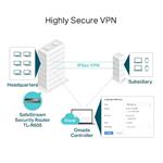 ER605 - Omada Gigabit VPN Router FUNKCIE - Centralizovaná správa: Cloudový prístup a aplikácia Omada pre mimoriadne pohodlie a jednoduchú správu - Päť gigabitových portov: Vysokorýchlostné káblové pripojenie - Až 3 porty WAN: 1 gigabitový port WAN a 2 gigabitové porty WAN/LAN s vyvážením záťaže zvyšujú mieru využitia viacriadkového širokopásmového pripojenia - Vysoko zabezpečená VPN: Podporuje až 20x IPsec LAN-to-LAN, 16x OpenVPN, 16x L2TP a 16x PPTP pripojenie VPN - Bohaté bezpečnostné funkcie: Pokročilé zásady brány firewall, ochrana DoS, filtrovanie IP/MAC/URL a ďalšie funkcie zabezpečenia chráni vašu sieť a dáta - Jeden port USB WAN pre mobilné širokopásmové pripojenie TECHNICKÉ VLASTNOSTI Rozhranie: 1x Gigabit WAN port, 2x Gigabit LAN/WAN porty, 2x Gigabit LAN port Tlačidlo: Reset Napájací zdroj: externý 9V/0.85 A DC Flash: 16 MB SPI DRAM: 128 MB LED: PWR, SYS, WAN (Link/Act), LAN Rozmery (Š x H x V): 158 × 101 × 25 mm Certifikácia: CE, FCC, RoHS OBSAH BALENIA - ER605 - Napájací adaptér - RJ-45 Ethernetový kábel - Užívateľská inštalačná príručka