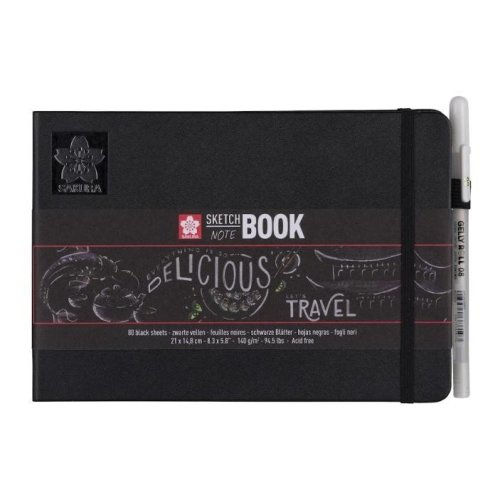Skicak/zápisník Sakura s rozmermi 21 x 14,8 cm (A5) s 80 čiernymi listami bezkyselinového papiera 140 g/m2 uchováva všetky vaše výtvory vytvorené tušou, ceruzkou, olejovým pastelom alebo uhlím na jednom mieste. Exkluzívne ilustrované puzdro je možné použiť ako popisovač. Umelecké dielo: Anne Jorinde (Gouden Lijntjes). Kniha s pevnými doskami je dodávaná s puzdrom na perá, ktoré sa dokonale hodia pre perá, ako je Pigma Micron a Sakura Gelly Roll. V zadnej časti Sketch - notebooku je priložená rozšíriteľná obálka na ukladanie skíc a poznámok. Pružný uzatvárací pásik zaisťuje, že kniha zostane pri cestovaní zatvorená a kompaktná. Zápisníky Sakura Sketch - sú ideálne pre skicovanie a písanie s výrobkami Sakura: Pigma Micron, Pigma Brush, Koi Coloring Brush Pen, Gelly Roll, Permapaque a originálny Cray-Pas. Zápisníky Sakura Sketch - sú k dispozícii s krémovo bielymi alebo čiernymi stránkami, v rôznych veľkostiach.