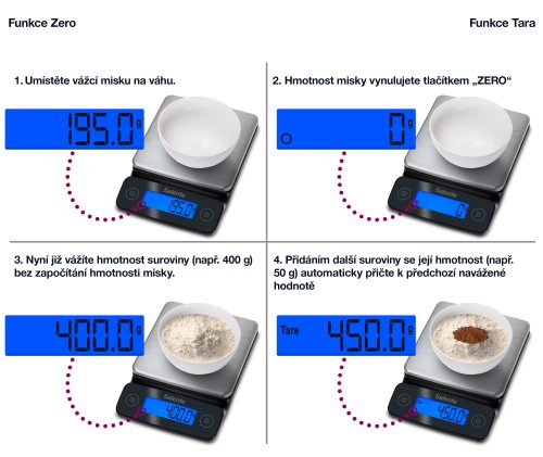 pre postupné dovažovanie a sčítanie hmotnosti ingrediencií.