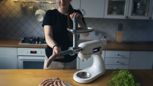 Rozmery s mlynčekom na mäso (š × h × v): 42,1 × 35 × 47,8 cm