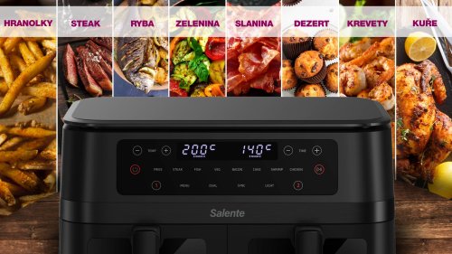 Predstavte si, že si doma pripravujete chrumkavé hranolky, šťavnaté steaky alebo neodolateľný sladký dezert, a pritom si nerobíte starosti s nezdravým tukom ani zbytočnými kalóriami navyše. Teplovzdušná fritéza Salente DoubleAir prevedie tento sen na realitu. Namiesto ponorenia do oleja totiž využíva horúci cirkulujúci vzduch . Vďaka tomu vytvára na chystaných ingredienciách chrumkavú textúru, avšak s minimom tuku. Vie fritovať aj grilovať ak jej výhodám patrí aj prítomnosť dvoch nezávislých fritovacích košov (s celkovým objemom 11 litrov ) na prípravu dvoch rôznych pokrmov naraz. Z vašej kuchyne skrátka vykúzli miesto, kde si opojné chute a vône podávajú ruku so zdravým životným štýlom. Vo dvojici sa to lepšie frituje
