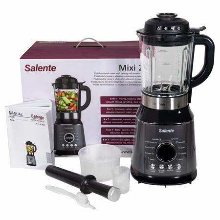Stolný mixér Salente Mixi 2L je multifunkčný vysokorýchlostný mixér, ktorý má okrem mixovania aj funkciu varenia, varenie v pare, pomalé varenie a vákuové mixovanie. Uvaríte v ňom sviečkovú, krémovú polievku, klasickú polievku, cícerovú kašu a pripravíte aj marmeládu alebo sójové mlieko. Mixér má 10 automatických programov: sójové mlieko, krémová polievka, pomalé varenie 85 ° C, kaša, klasická polievka (bez mixovania), detské jedlo/džús, smoothie, koktail, orechové mlieko a program na mixovanie (bez varenia).