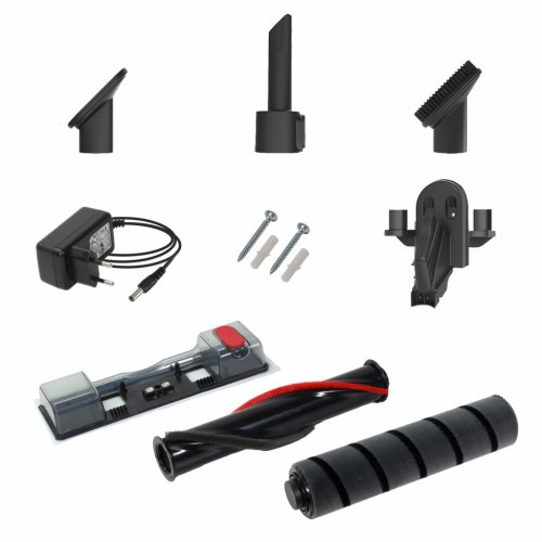 • Vysávač Salente SmartDust 3.1 • Prémiová vysávacia rúrka • Motorizovaná hubica • Kefa na koberce • Kefa na tvrdé podlahy • Štetinová hubica • Hubica na čalúnenie • Štrbinová hubica • Mopovací nástavec • Držiak na stenu • Nabíjacia základňa • Nabíjacia základňa