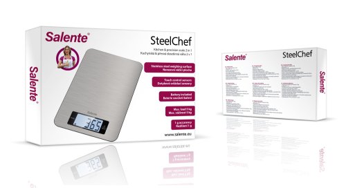 Salente SteelChef, kuchynská váha, nerezová • Váživosť 5 kg • Rozlíšenie 1 g • Nerezová vážiaca plocha • Funkcia Zero a Tara • Beztlačítkové dotykové ovládacie senzory • Lítiové batérie súčasťou dodávky …