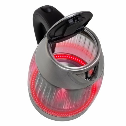 • Objem 1,8 litra • Príkon 2200 W • Telo zo borosilikátového skla a nerezovej ocele • Celoplošné podsvietenie (modré alebo červené) • Anti-Calc filter proti vápenatým usadeninám • Obojstranný ukazovateľ vodnej hladiny • Tlačidlo na veku s bezpečnostnou poistkou • Stredový