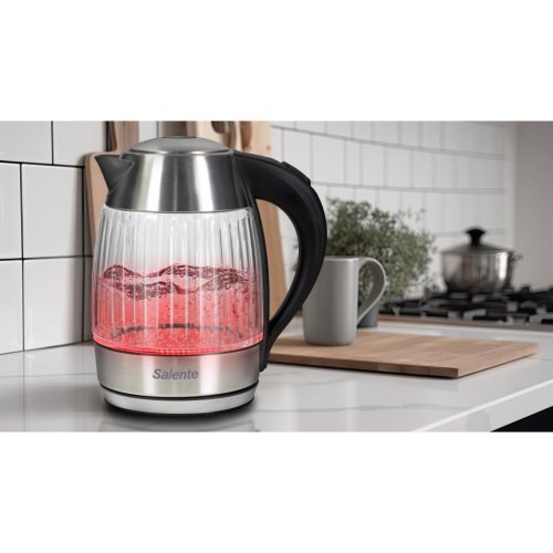 Salente StripeGlass, rýchlovarná kanvica 1,8 l, nerez/sklenená, červené podsvietenie