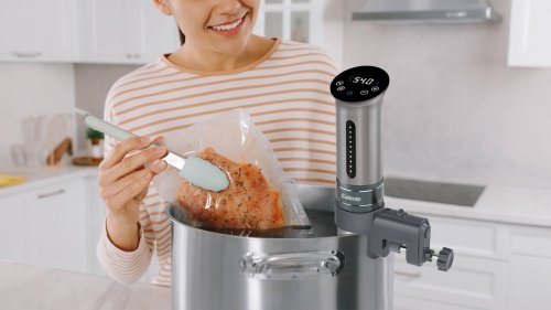 V jednoduchosti je krása. Sous Vide varič Salente SuChef vás presvedčí, že aj dlhá príprava pokrmu môže byť v skutočnosti kratšia, než si myslíte. Stačí iba vybrať vhodnú kombináciu teploty a času z prednastavených receptov alebo si podľa vlastného gusta navoliť vlastnú kombináciu a jediným stlačením tlačidla začať prípravu. Nemusíte sa o nič starať - Sous Vide varič Salente urobí všetko za vás. Máte veľa hodín času sami pre seba alebo môžete ísť pokojne spať. Tichý výkonný DC motor