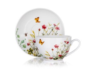 Šálka s tanierikom MEADOW, s krásnym kvetinovým vzorom, sa hodí na podávanie kávy alebo čaju pri všedných i sviatočných príležitostiach. Šálka s tanierikom je vhodná do mikrovlnnej rúry aj umývačky. S týmto dekorom si môžete zakúpiť aj ďalšie produkty a vytvoriť si tak krásnu servírovaciu sadu.
