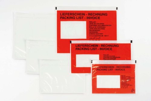 Samolep.vrecká na zásielky-C5,priehl.+červená, 250 ks