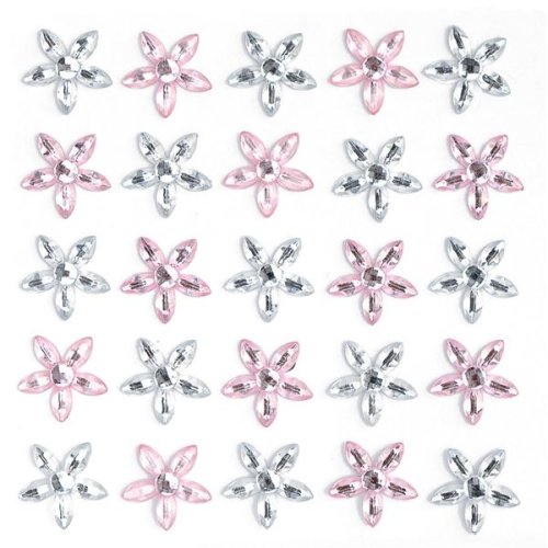 Samolepiace dekor. kvety s kamienkami, ružové, 25 ks
