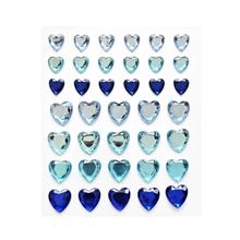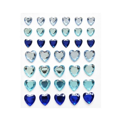 Samolepiace dekor. srdiečka s kamienkami, modré, 38 ks