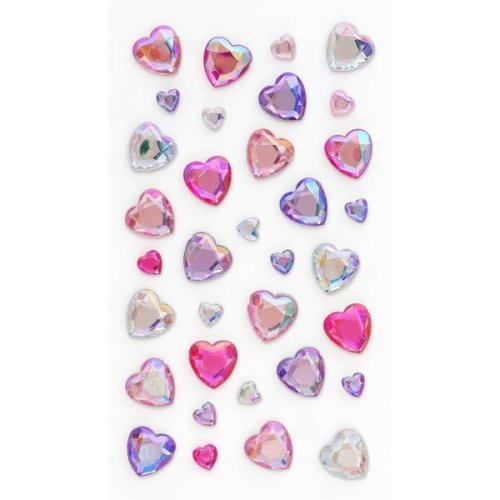 Samolepiace dekor. srdiečka s kamienkami, ružové, 35 ks
