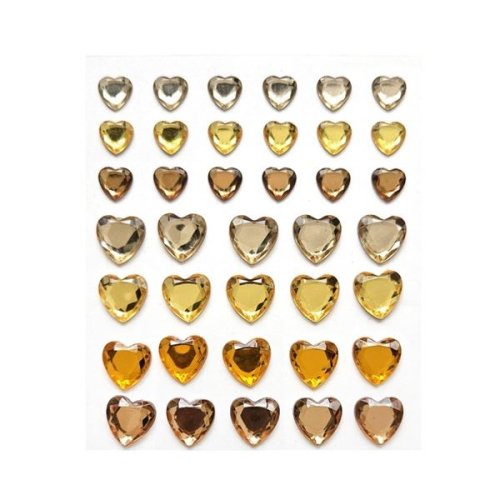 Samolepiace dekor. srdiečka s kamienkami, žlté, 38 ks