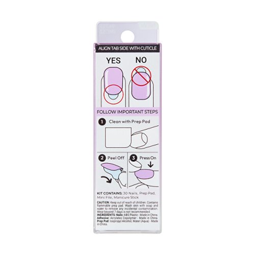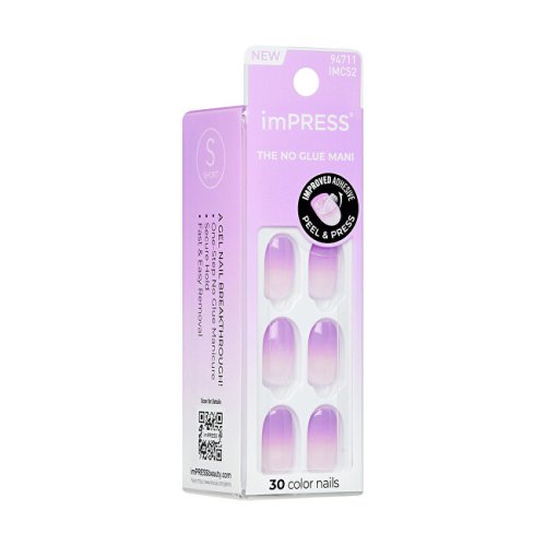 Samolepiace nechty vo svetlo fialovom ombre. S technológiou No Glue, ktorá nepotrebuje žiadne lepidlo, nepoškodzuje prírodné nechty a poskytuje až 7 dní perfektné manikúry vďaka novo vylepšenému adhezívu. Exkluzívna Color Reimagined technológia verne napodobňuje profesionálnu gélovú úpravu, ktorú bežný lak nikdy nenahradí.