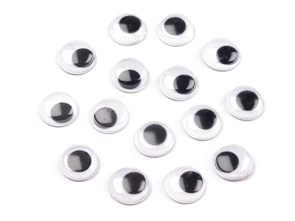 Plastové oči dodajú tvári ľudí alebo zvierat ten správny výraz. Záleží len na vašej fantázii, kam ich nalepíte. Čierna šošovka je pohyblivá. Spodná strana je opatrená samolepiacou fóliou. Nalepenie očí je ľahké. Odlepte spodný krycí papier a oči prilepte na suchý, čistý, pevný povrch. Široké uplatnenie nájdu pri tvorbe originálnych prianí technikou scrapbooking.