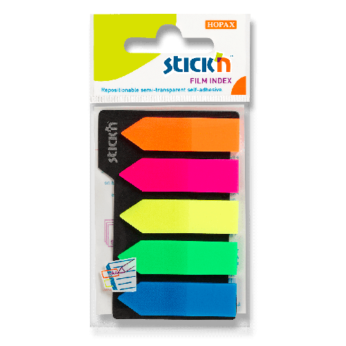 Samolepiace žiarivo neónové prúžky. Vhodné ku korektúram textu a ako záložky. Priehľadná neónová fólia, ktorá neprekrýva text dokumentu. Rozmer 45 x 12 mm, 5 farieb x 25 listov