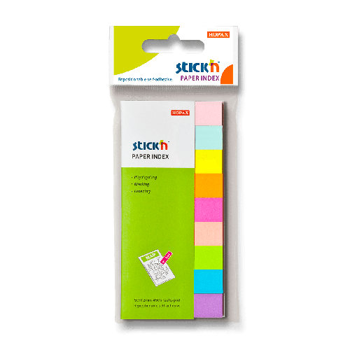 Farebné samolepiace záložky. Možnosť mnohonásobnej aplikácie, po odlepení nezanechávajú žiadnu stopu. Rozmer: 50 x 12 mm, 9 farieb x 50 listov