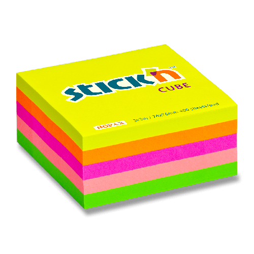 Samolepiace bloček v tvare kocky. Veľkosť 76 x 76 mm, 400 listov, 5 farieb.