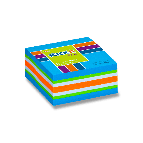 Samolepiace bloček v tvare kocky. Veľkosť 51 x 51 mm, 250 listov, 5 farieb.