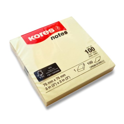 papierové samolepiace bločky, * opakovane použiteľné, * ideálne na zanechanie odkazov a pripomienok, * nezanechávajú škvrny, * nekrútia sa, Kores bločky majú Certifikáciu FSC® - C183931. Bločky sú vyrábané zo surovín pochádzajúcich zo zodpovedne spravovaných lesov, čo prispieva k ochrane prírodných ekosystémov a podporuje ekologicky šetrné postupy. FSC® (Forest Stewardship Council) je medzinárodne uznávaný systém certifikácie, ktorý zaručuje, že drevo az neho vyrobené papierové produkty, pochádza zo zodpovedne obhospodarovaných lesov.