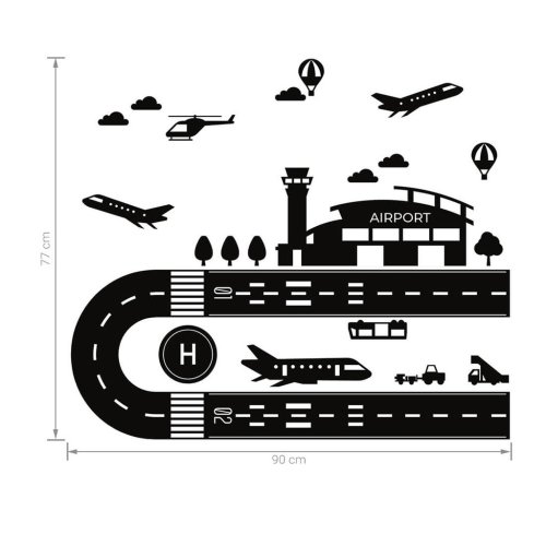 Krásna nálepka na podlahu Letiska. Letiskový podlahový ticker bol vytvorený pre fanúšikov nebeských dobrodružstiev. Veď kto v našom detstve nechcel byť pilotom :). Pomáhame plniť tieto sny a zároveň zaručujeme nadpozemskú zábavu bez toho, aby sme zaberali zbytočné miesto v detskej izbe. Náš produkt je jedinečný a jediný svojho druhu. Vyrobené zo špeciálnej fólie a matného laminátu, vďaka ktorému je jeho povrch odolný a nezmazateľný. Samolepka je vhodná na podlahu, ale je možné ju aplikovať aj na akýkoľvek iný hladký povrch, ako sú steny alebo nábytok. Nečakajte dlhšie. Doprajte svojmu dieťaťu mimoriadnu zábavu a skráťte si čas na upratovanie. Táto sada obsahuje: letisko (90x77 cm) a doplnkové prvky. Presné rozmery sú uvedené na poslednej fotke.<BR>- rozmery: zobrazené na poslednej fotke<BR>- materiál: najvyššia kvalita PVC fólie<BR>- ochrana: odolná proti poškriabaniu matný laminát<BR>- odolný: fólia odolná voči vlhkosti a UV žiarenie<BR>- rez: mimo obrysu - nemajú podklad<BR>- obal: zasielané v bio tubách