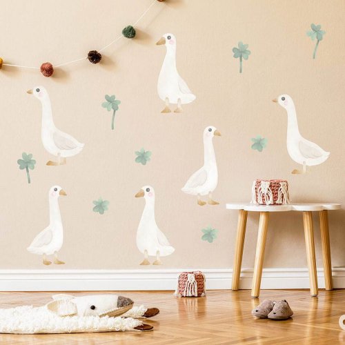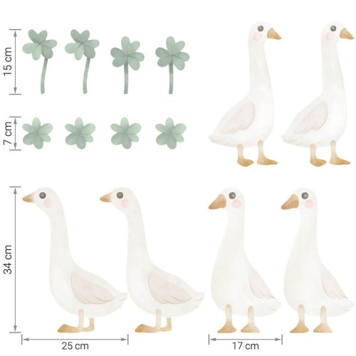 Krásna nálepka na stenu Husičky. Nálepky na stenu s husičkami vyžarujú jemnosť svojimi neutrálnymi tónmi a jedinečnými detailmi a hladko zapadajú do atmosféry interiérov inšpirovaných boho. Ich jemnosť z nich robí nádhernú dekoráciu vhodnú pre chlapcov aj dievčatá. Pozdvihnite kúzlo a radosť v ich izbách s našimi úchvatnými samolepkami na stenu. Nálepka je krásnou dekoráciou, zároveň chráni stenu pred nečistotami alebo poškodením. Samolepka je zaistená špeciálnym matným laminátom, ktorý ju chráni pred poškriabaním pri každodennom používaní a zároveň uľahčuje lepenie – fólia je silnejšia a ľahšie sa prenáša na stenu. Ak hľadáte dokonalý spôsob, ako oživiť detskú izbičku, naše samolepky na stenu sú tou správnou voľbou. Objednajte si ich ešte dnes a urobte radosť svojmu dieťaťu. Táto sada obsahuje: samolepky na stenu husi (6 ks) a ďatelina (8 ks). Presné rozmery každej časti nálepky sú uvedené na poslednej fotografii.