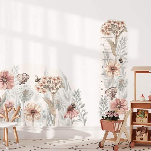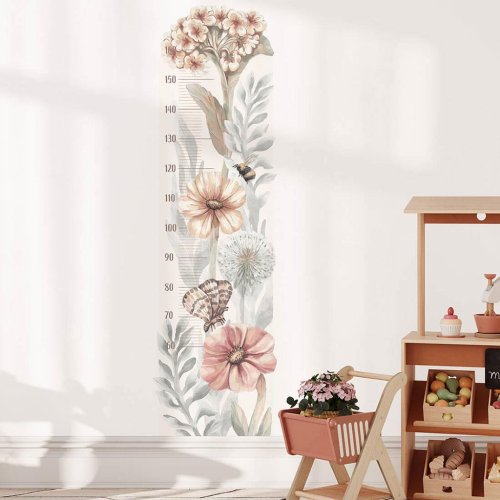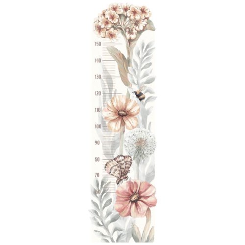Krásna nálepka na stenu Poľné kvety - výšková miera. Nálepka na stenu Wildflowers Height Measure, zdobená pôvabnými akvarelovými kvetinami, motýľmi a včelami, je ideálnou voľbou pre tých, ktorí hľadajú pokojnú a prirodzenú dekoráciu do detskej izby. Pokračujeme v tradícii označovania rastu detí v priebehu rokov a ponúkame jedinečné výškové tabuľky vo forme samolepiek na stenu, ktoré je možné umiestniť kamkoľvek, čo vám umožní sledovať každý centimeter výšky vášho dieťaťa. Každý prvok je starostlivo vyrezaný a ponúka nekonečné možnosti dekorácie. Či už je tento dizajn štylizovaný v škandinávskom alebo boho dekore, vyniká svojim jedinečným procesom tvorby. Ručne vyrábané akvarelové náčrty boli pôvodne vytvorené a slúžili ako inšpirácia pre celú kolekciu. Potom boli s využitím pokročilej počítačovej technológie starostlivo pripravené tlačové materiály, čo viedlo k skutočne výraznej sérii. Samolepka na stenu je zaistená špeciálnym matným laminátom, ktorý ju chráni pred poškriabaním pri každodennom používaní a tiež uľahčuje lepenie – fólia je silnejšia a ľahšie sa prenáša na stenu. Objednajte si ich ešte dnes a urobte radosť svojmu dieťaťu. Na mieru si môžete poznamenať výšku od 50 do 160 cm. Rozmer samolepky: 42x145 cm. Presné rozmery každej časti nálepky sú uvedené na poslednej fotografii.