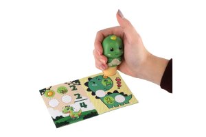 Roztomilá pečiatka v tvare dinosaura je skvelou kreatívnou hračkou pre všetkých malých milovníkov pravekých tvorov. Súčasťou balenia sú aj samolepkové kolieska s rôznymi dinosaurami a tematický hárok, na ktorý si môžu deti samolepky nalepovať.