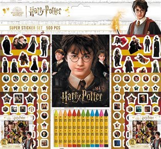 Set obsahuje takmer 500 rôznych druhov samolepiek, blok (32 listov) na písanie aj maľovanie a 12 voskoviek. Tento veľký samolepkový set obsahuje viac ako 500 samolepiek s motívmi obľúbených postáv a scén z kúzelníckeho sveta. Súčasťou balenia je aj blok s obálkou Harry Potter a sada 12 voskoviek, s ktorými si deti môžu vytvárať vlastné magické obrázky. Vhodné pre deti od 3 rokov.