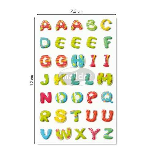 Samolepky Maildor 3D Cooky s motívmi písmen as efektom 3D. Balenie obsahuje 1 hárok s 35 samolepkami. Rozmer balenia 7,5 x 12 cm.