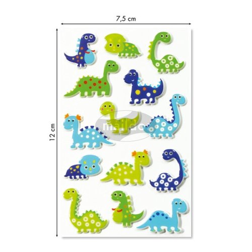 Samolepky Maildor 3D Cooky s motívmi dinosaurov as efektom 3D. Balenie obsahuje 1 hárok s 31 samolepkami. Rozmer balenia 7,5 x 12 cm.