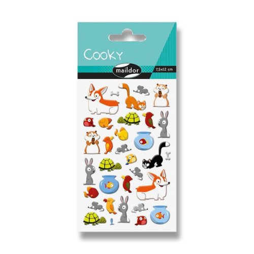 Samolepky Maildor 3D Cooky s motívmi domácich zvieratiek as efektom 3D. Balenie obsahuje 1 hárok s 33 samolepkami. Rozmer balenia 7,5 x 12 cm.