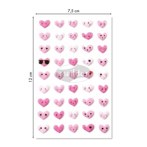 Samolepky Maildor 3D Cooky s motívmi emotikonov v tvare srdca as efektom 3D. Balenie obsahuje 1 hárok so 45 samolepkami. Rozmer balenia 7,5 x 12 cm.