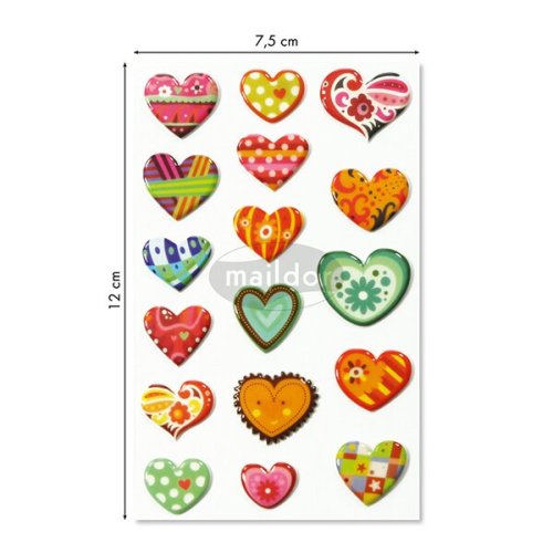 Samolepky Maildor 3D Cooky s motívmi rôznych srdiečok as efektom 3D. Balenie obsahuje 1 hárok so 17 samolepkami. Rozmer balenia 7,5 x 12 cm.