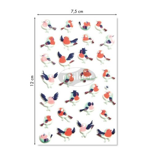 Samolepky Maildor 3D Cooky s motívmi vtáčikov as efektom 3D. Balenie obsahuje 1 hárok s 28 samolepkami. Rozmer balenia 7,5 x 12 cm.