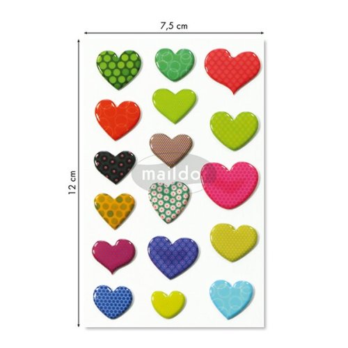 Samolepky Maildor 3D Cooky s motívmi vzorovaných sŕdc as efektom 3D. Balenie obsahuje 1 hárok so 17 samolepkami. Rozmer balenia 7,5 x 12 cm.